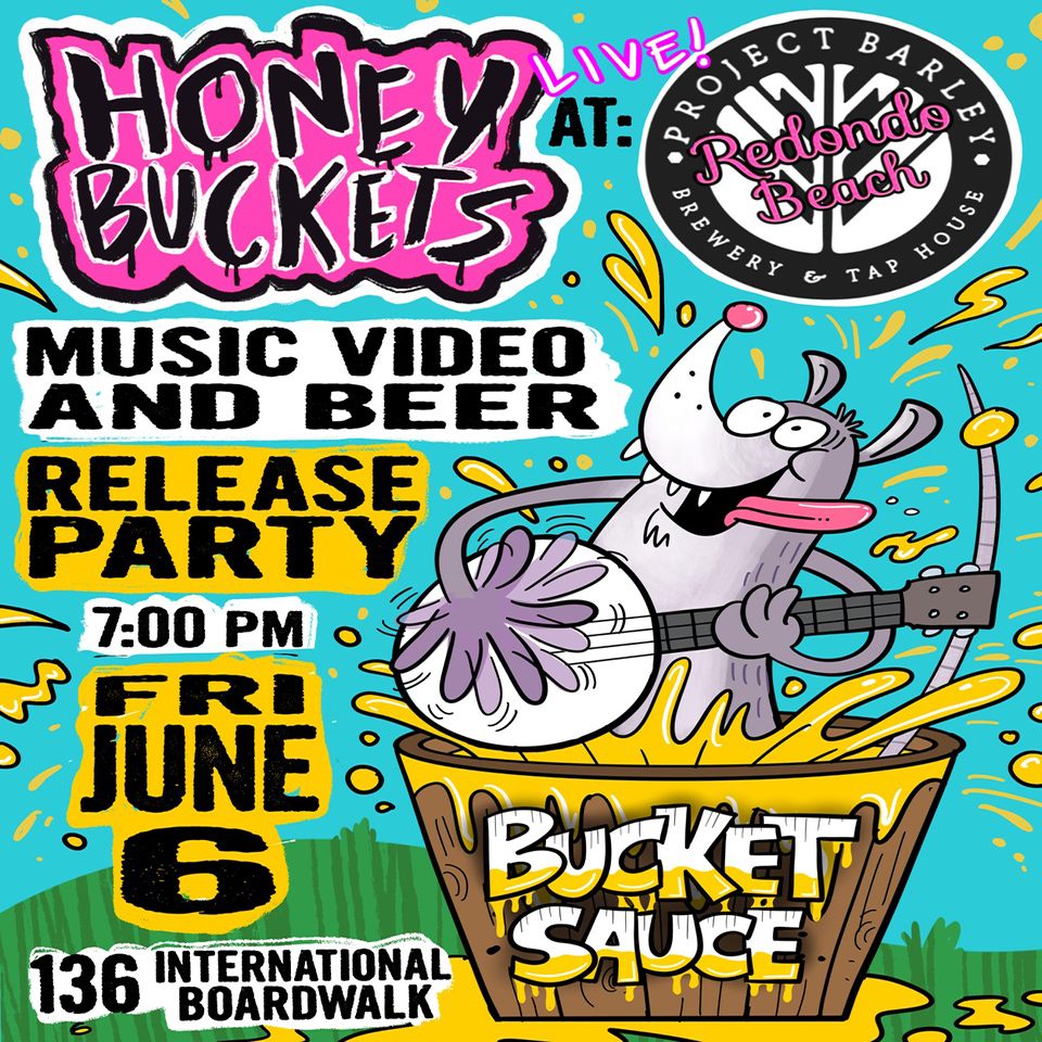 Don’t miss Honey Buckets Massive Release bash at Project Barley Redondo Beach, Fri June 6th 7pm! New Single, Music Video… & BEER! Bucket Sauce is delicious, refreshing & on tap! Come celebrate with us!